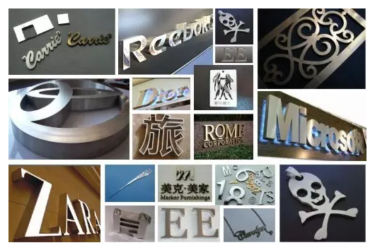 金屬字作為廣告字牌中的“主角”,能為企業帶來最簡單、最直接的宣傳效果。而光纖激光切割機適用于鐵、不銹鋼、鈦金、銅等金屬廣告字常用材料。利用其切出字型,再通過折彎、焊接、噴漆,也可在字的背面裝上LED模組制成發光字,體現出金屬的立體感、莊重感。